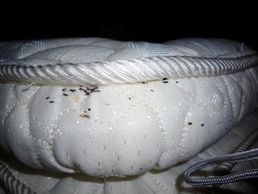 Estas manchas negras son excremento de chinches. Esto nos indica donde hay actividad y nos enfocamos a buscar todas las áreas donde puedan anidar.